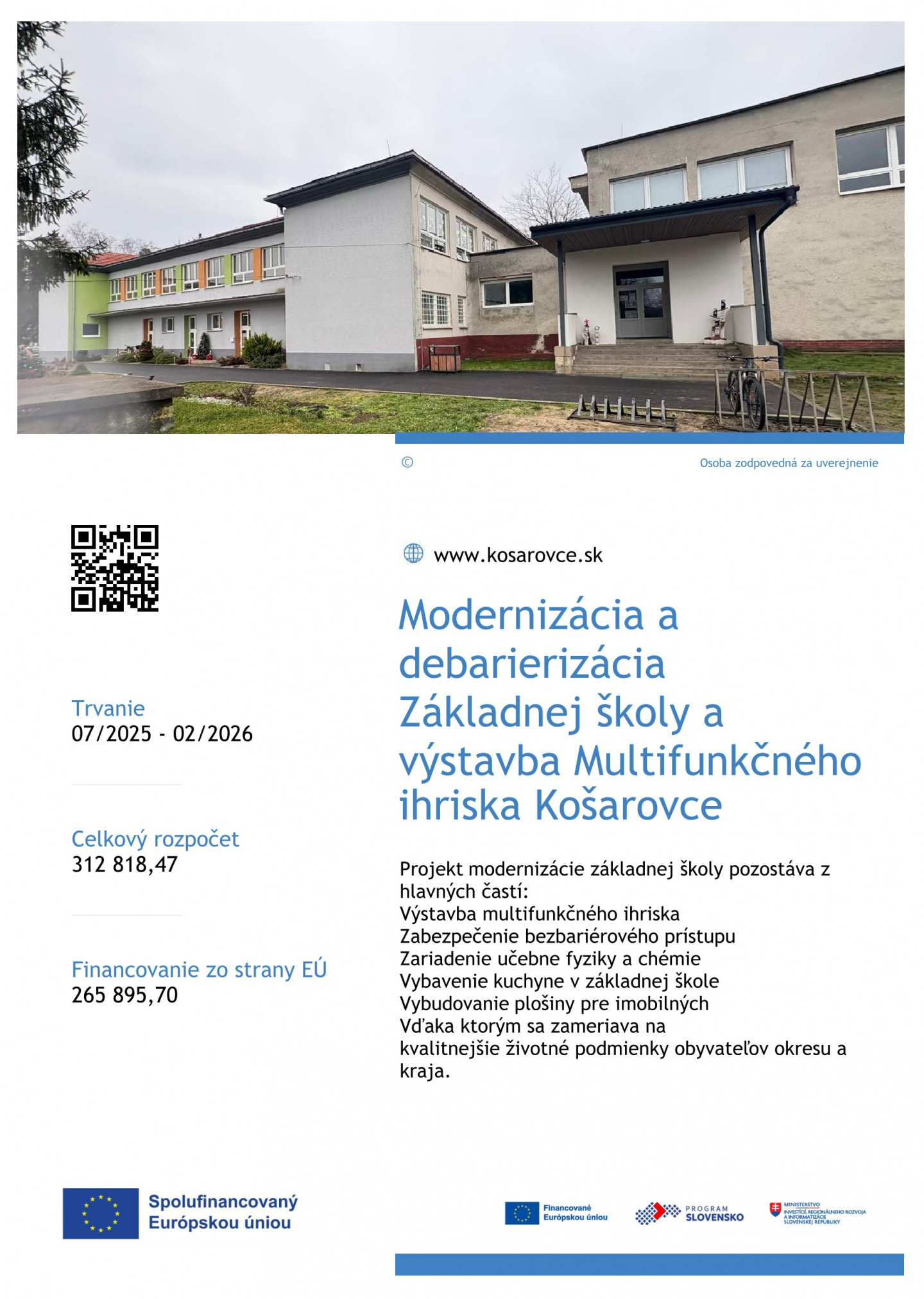 Modernizácia a debarierizácia Základnej školy a výstavba Multifunkčného ihriska Košarovce